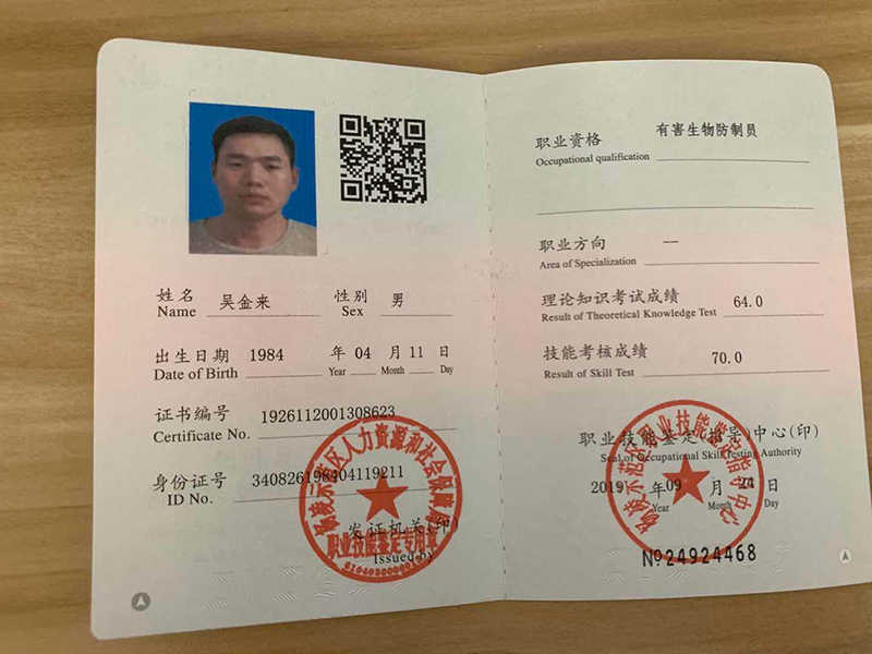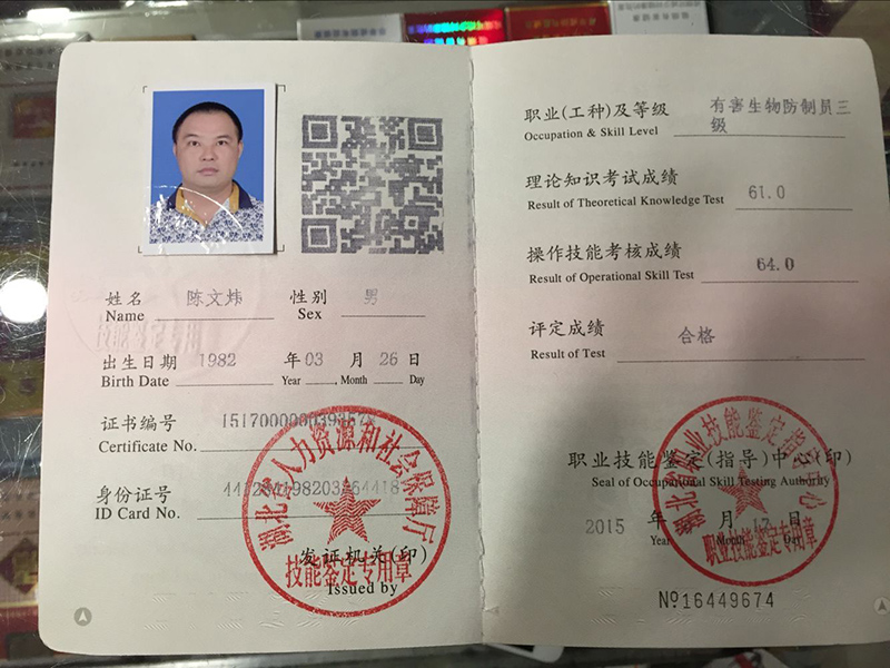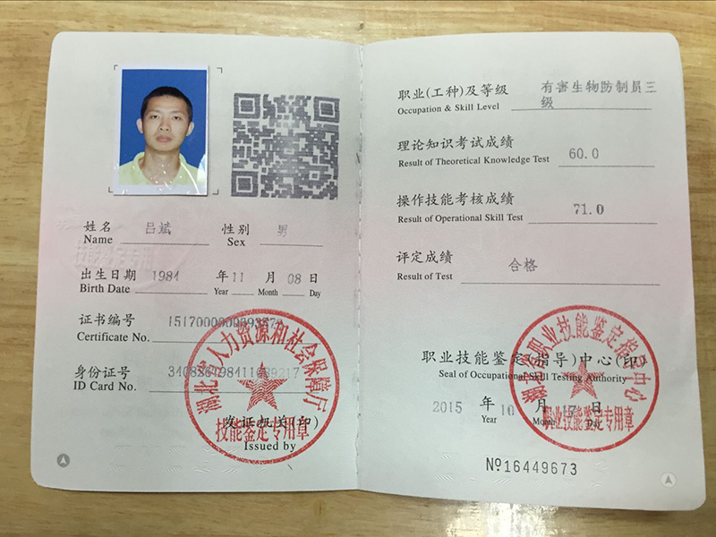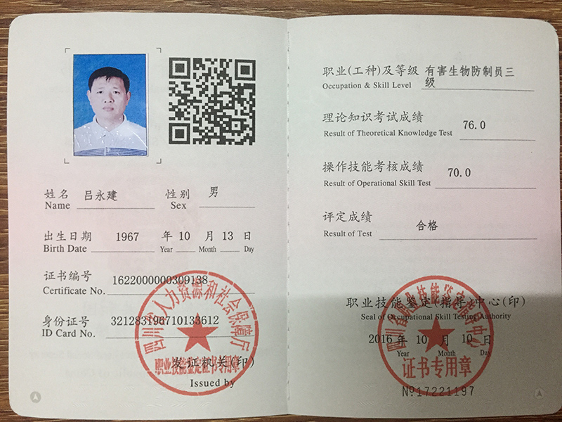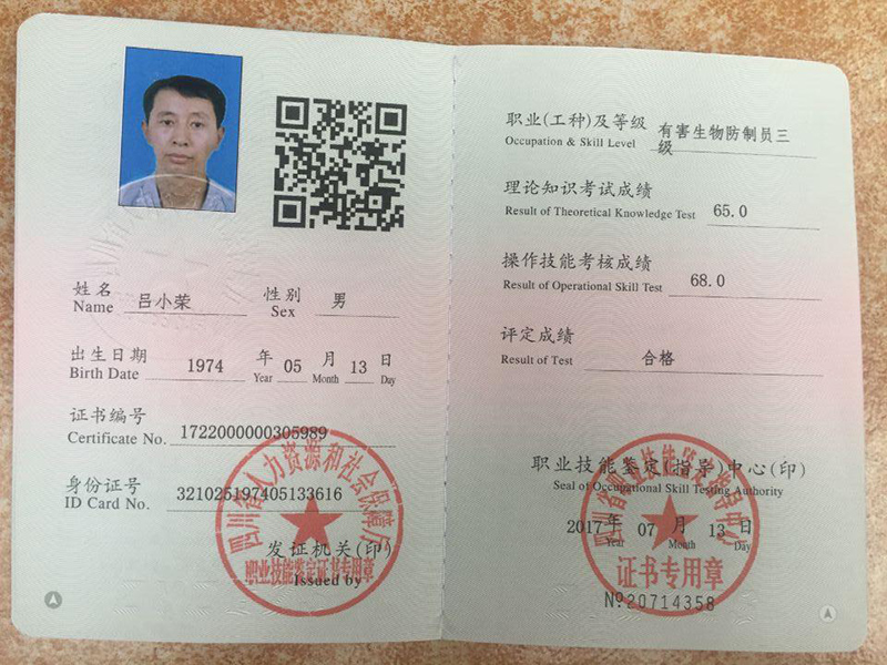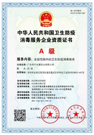 中國(guó)衛(wèi)生有害生物防制服務(wù)機(jī)構(gòu)服務(wù)能力證書